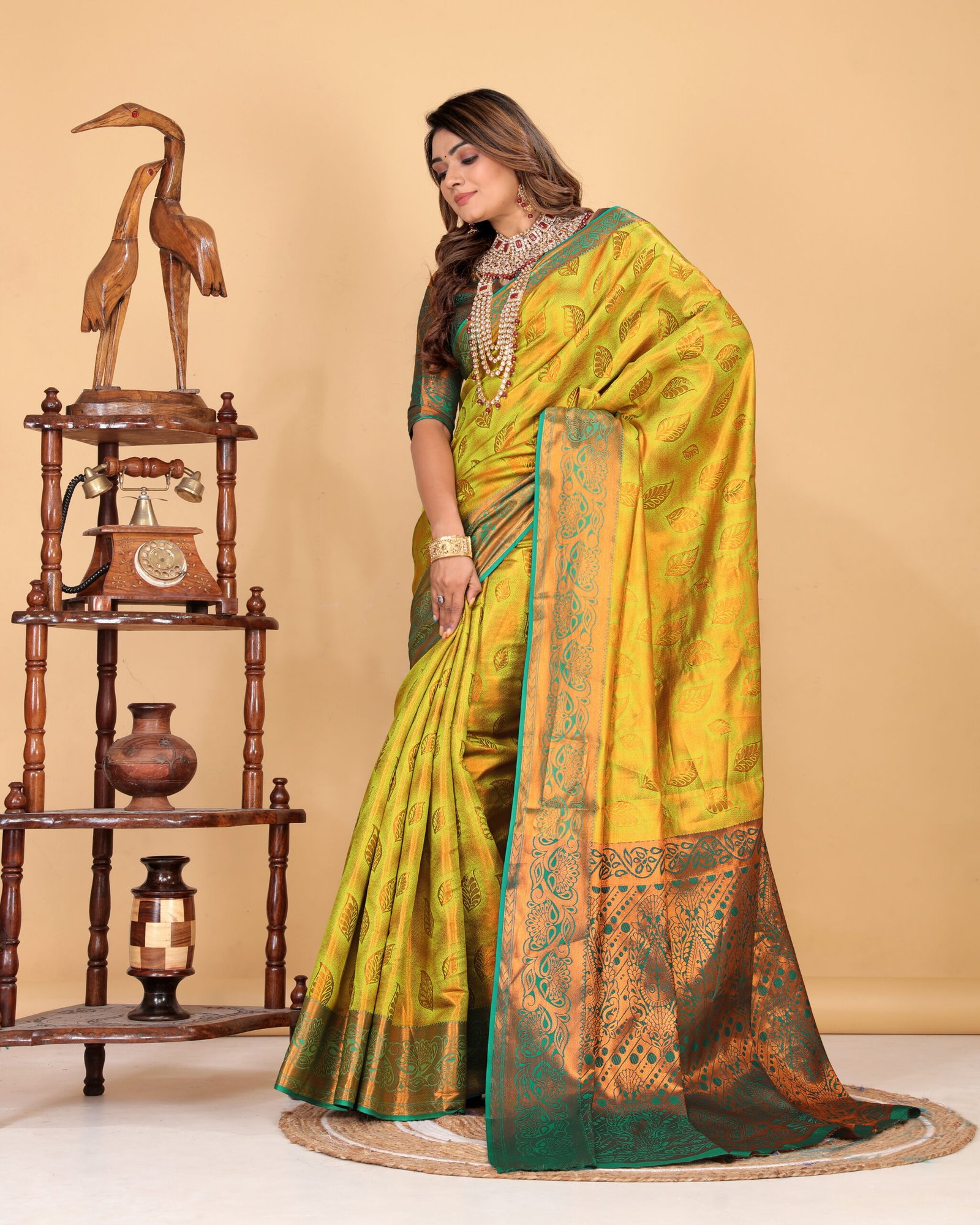 - Elegant woven motifs with zari detailing