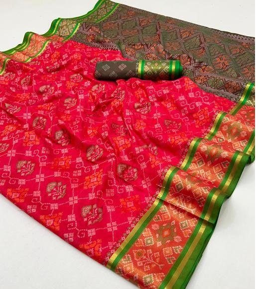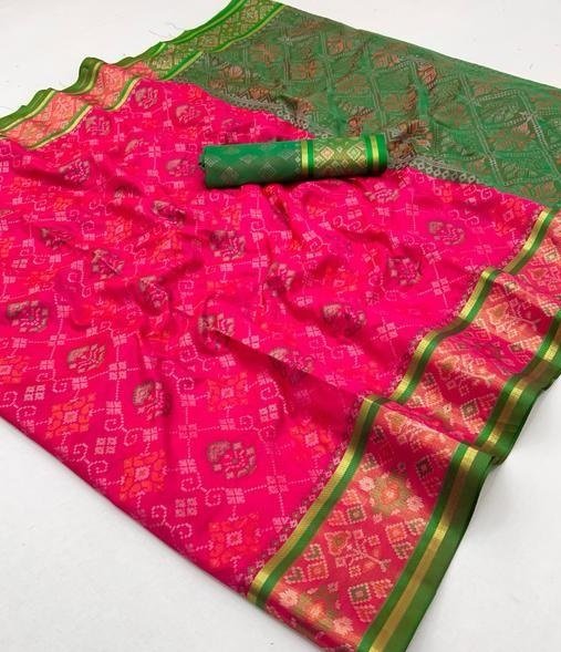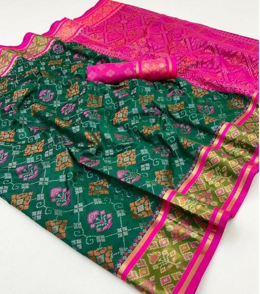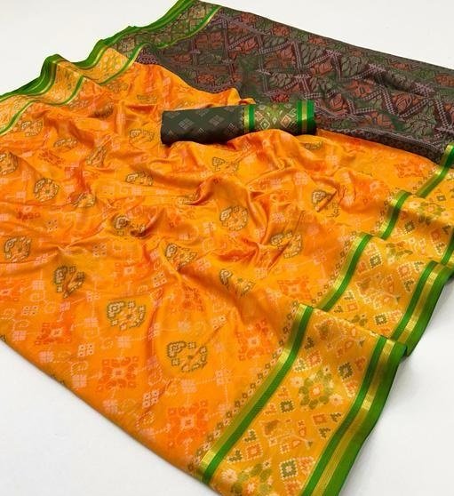 Patola Silk Saree is a graceful fusion of traditional Patola patterns and contemporary elegance. Designed to enhance your ethnic style, this saree features vibrant colors and fine detailing that make it suitable for both festive and special occasions.