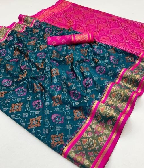 Experience the beauty of heritage fashion with this Patola Silk Saree, designed to bring elegance and tradition together. Featuring eye-catching Patola-inspired patterns and rich hues, this saree adds a royal touch to your ethnic look.